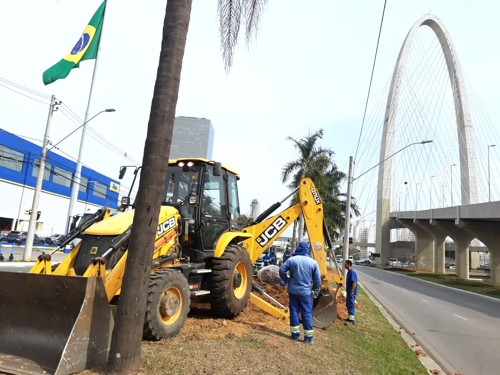 As árvores foram plantadas no canteiro lateral da Ponte Estaiada Juana Blanco.