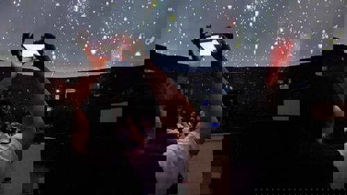 Com duração aproximada de 30 minutos, as sessões conduzem os visitantes por uma viagem interplanetária com projeção em 360 graus.