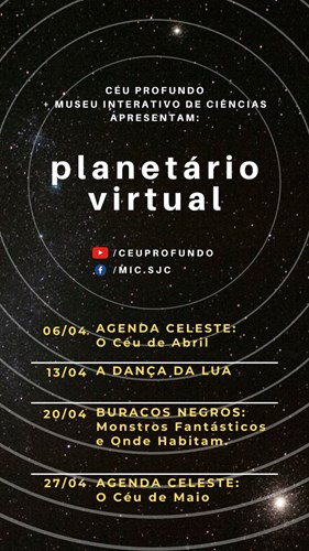 Como estará o céu durante o quarto mês deste ano? Para responder esta questão e se aprofundar nos temas celestes, o MIC (Museu Interativo de Ciências) de São José dos Campos irá realizar encontros online durante as terças-feiras de abril, sempre às 20h.