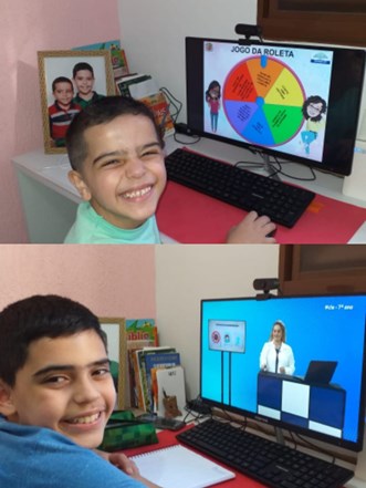 Para Samuel, “as aulas são divertidas e muito legais”. “Eu gosto de acompanhar no computador e lá na escola também, agora estou entendendo todas as matérias”, diz.