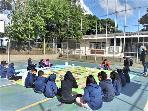 A ação, desenvolvida pelos eixos de Promoção à Saúde e Educação Ambiental, contou com a parceria da Secretaria de Saúde com o envio do tapete pedagógico.