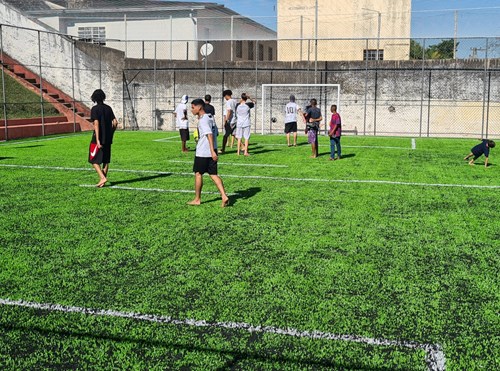 O espaço ganhou uma quadra de futebol society com grama sintética no lugar onde existia um piso de concreto, que provocava constantes ferimentos em crianças e jovens. O alambrado também foi reformado, o muro pintado e o entorto da quadra ganhou um novo passeio, com toda acessibilidade.