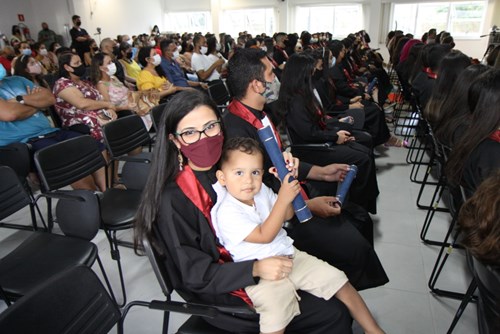 Camila Ribeiro da Silva, 28 anos, recebeu seu certificado de Técnica em Administração com uma companhia especial em seu colo, o filho Rafael Batista Ribeiro de Souza, de 2 anos.