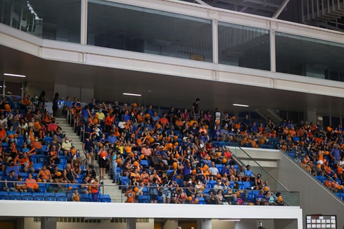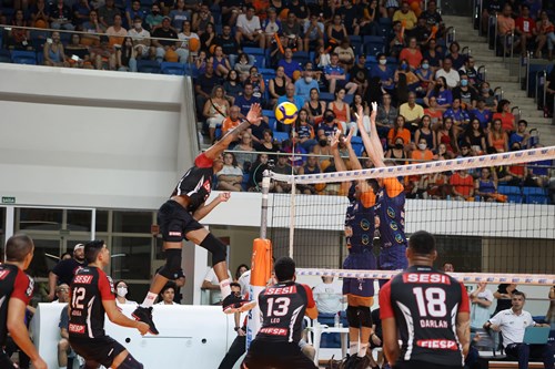 O primeiro jogo do Farma Conde Vôlei São José na nova arena municipal de esportes (Farma Conde Arena), no último sábado (19), reuniu cerca de 4.000 torcedores que fizeram a festa nas arquibancadas, apesar da derrota para o Sesi-SP por 3 sets a 2 na última partida da fase de classificação da Superliga Nacional masculina.