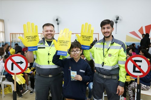 Durante as atividades, os agentes dão dicas sobre segurança viária e travessia segura, desenvolvem atividades recreativas e simulações para o envolvimento dos estudantes.