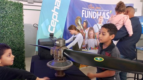 Alunos, ex-alunos, pais, muitas crianças e adolescentes lotaram o estande da Fundhas/Cephas, que divulgou os cursos de Mecânica de Aeronaves e o de Robótica.