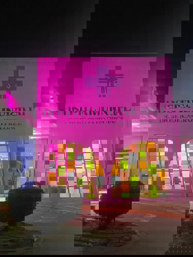 A fachada do Hospital Municipal está iluminada com a cor rosa | Foto: Divulgação/SPDM