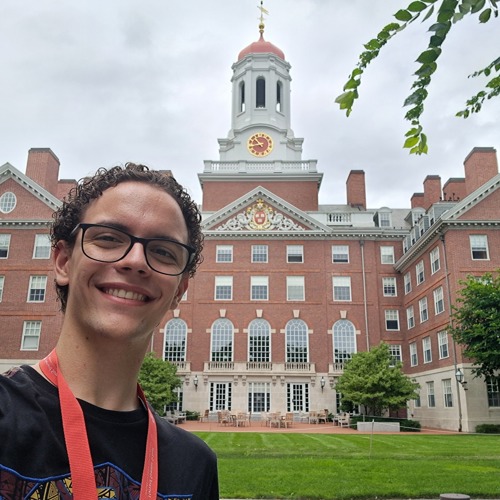 Jonas Cará, ex-aluno da Emef Jacyra Baracho, em frente a Dunster House| Foto: Arquivo pessoal
