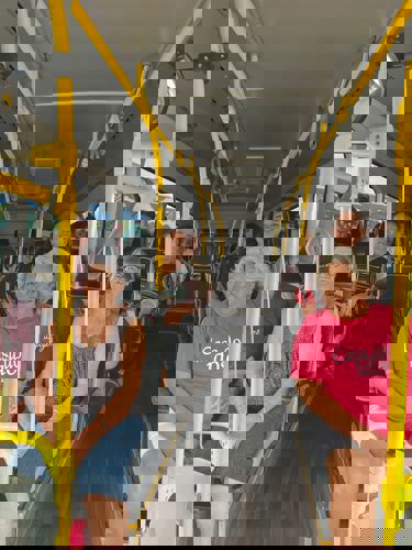 Na sequência, a equipe do EducaMob conduziu uma atividade dinâmica a bordo de um protótipo do Veículo Leve sobre Pneus (VLP) da Linha Verde, estacionado no PIT. Por meio de um quiz interativo e divertido, jovens e idosos testaram seus conhecimentos sobre boas práticas no trânsito — desde o comportamento de motoristas e pedestres até o respeito ao Código de Trânsito Brasileiro (CTB).