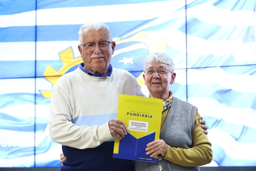 Casados há 57 anos, dona Elza e sr. João se emocionaram ao receber o título de propriedade | Foto: Cláudio Vieira/PMSJC
