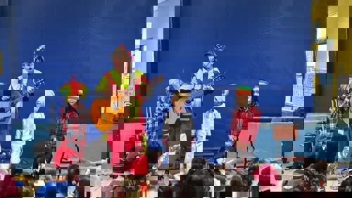 A alegria do “Tio Galinha” animou o acampamento e arrancou sorrisos das crianças | Foto/PMSJC