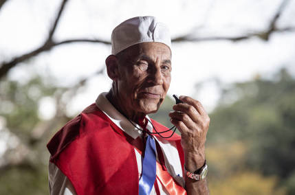 Mestre Manoel dos Santos à frente do grupo | Foto: Divulgação