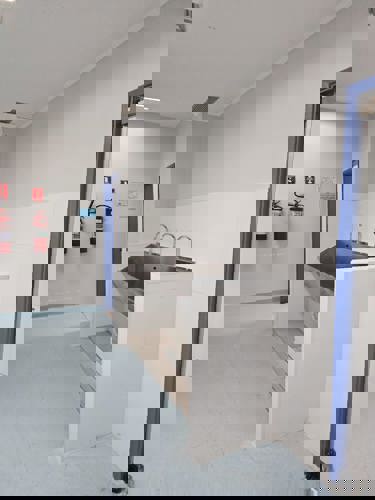 Neste mês, o Centro Cirúrgico teve duas salas totalmente revitalizadas, com instalação de novas placas nas paredes e substituição das pias para lavagem das mãos, reforçando os padrões de higiene e segurança.